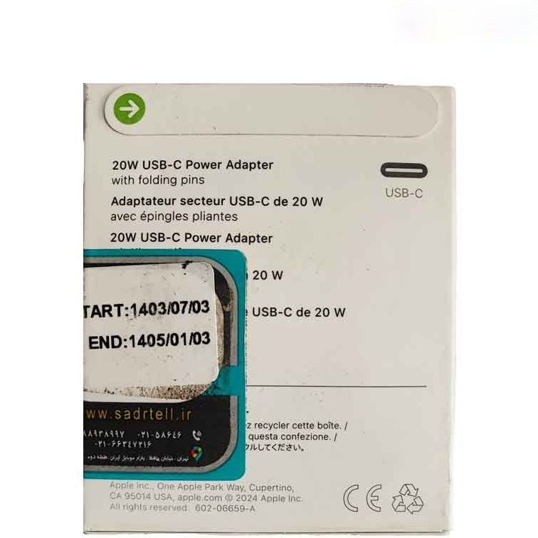 آداپتور 20 وات 3 پین اورجینال اپل مدل B/A