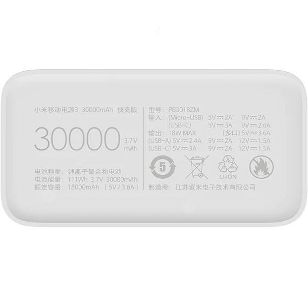 پاوربانک شیائومی مدل PB3018ZM ظرفیت 30000 اصل